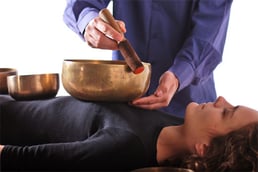 El paciente se tumba, cierra los ojos, y se concentra exclusivamente en el sonido que produce el terapeuta al tocar los cuencos.